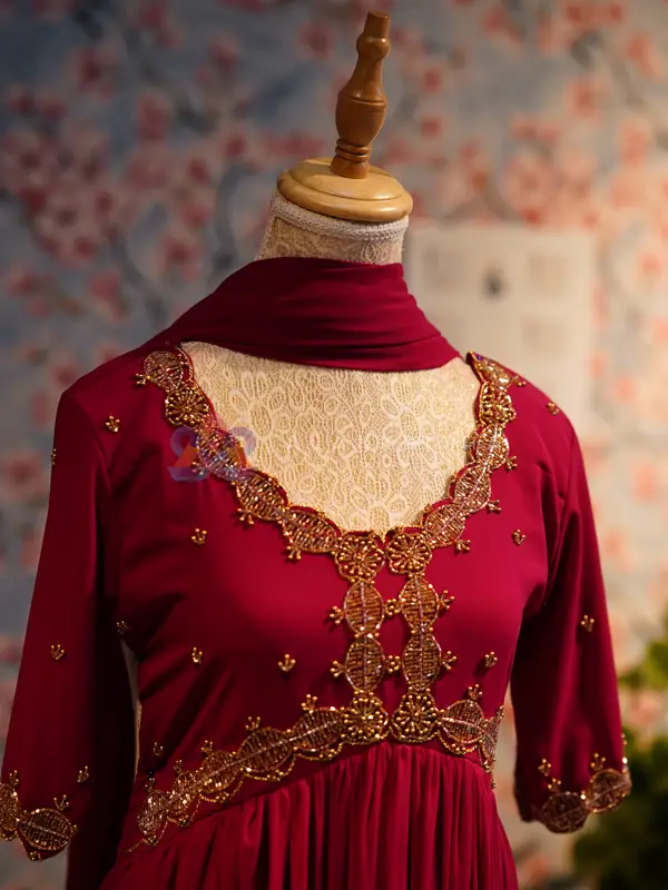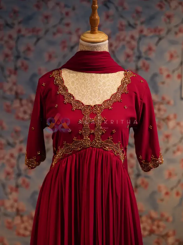 Flowing Alia-cut Anarkali silhouette for a flattering, regal look.