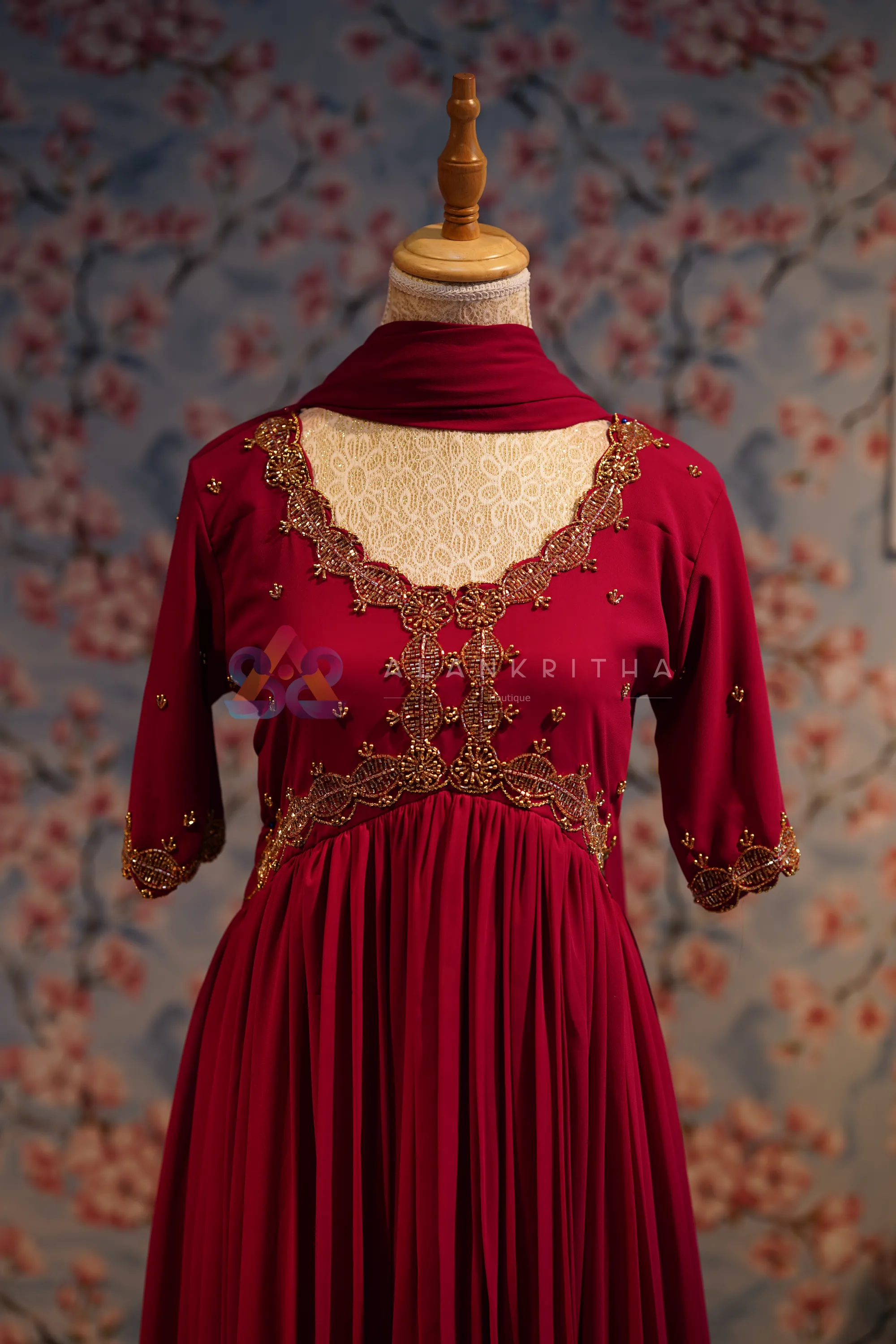Experience elegance redefined with our Georgette Alia-Cut Anarkali, designed for timeless grace and modern sophistication.
