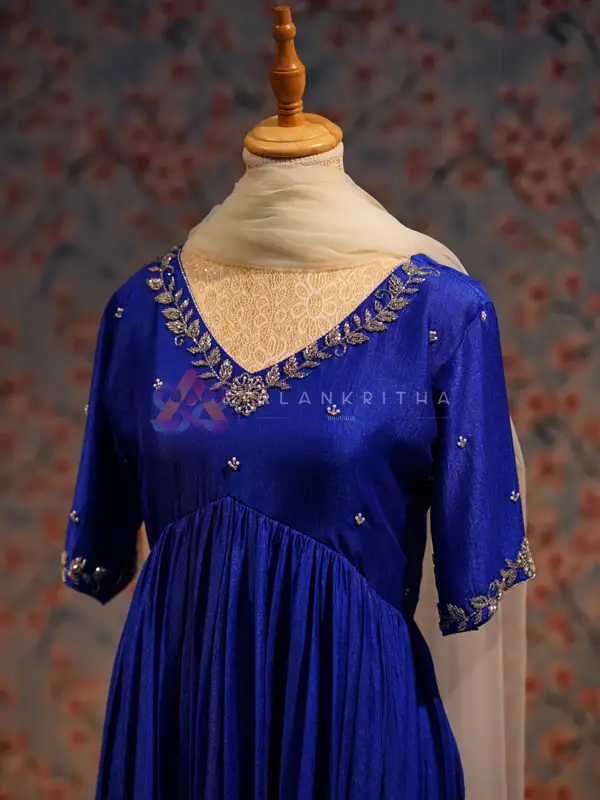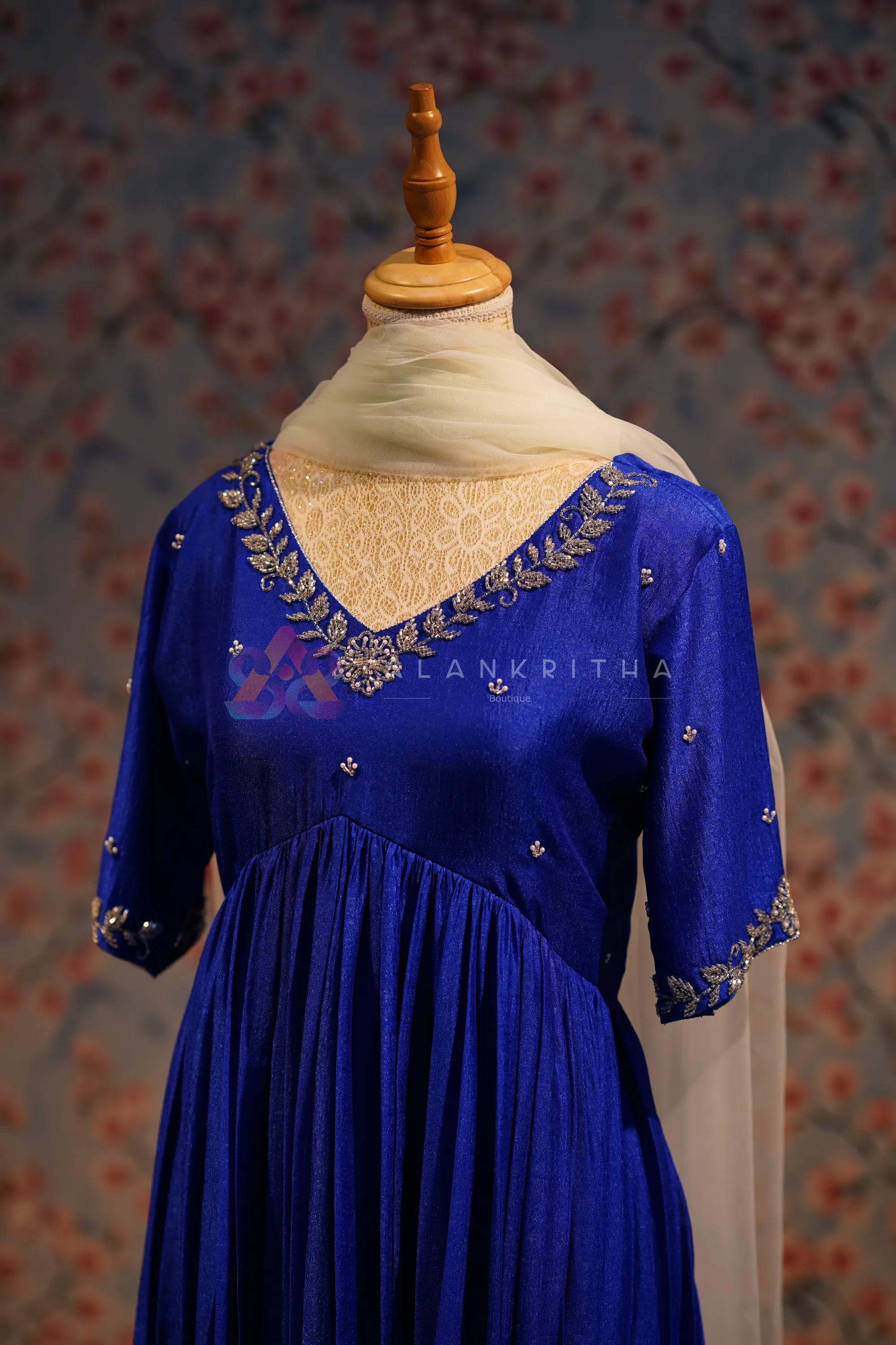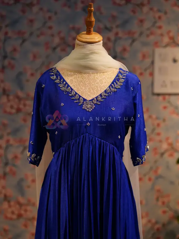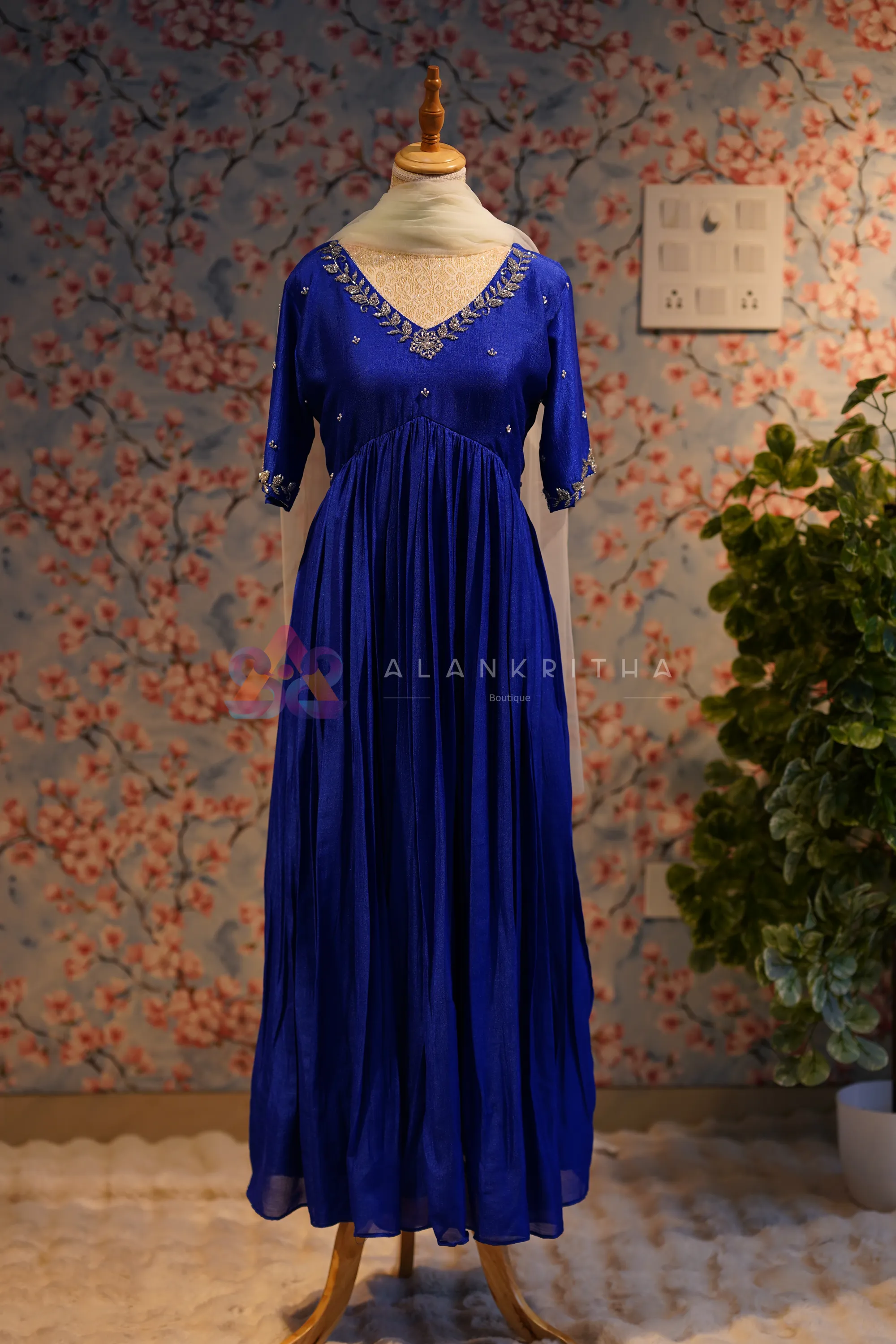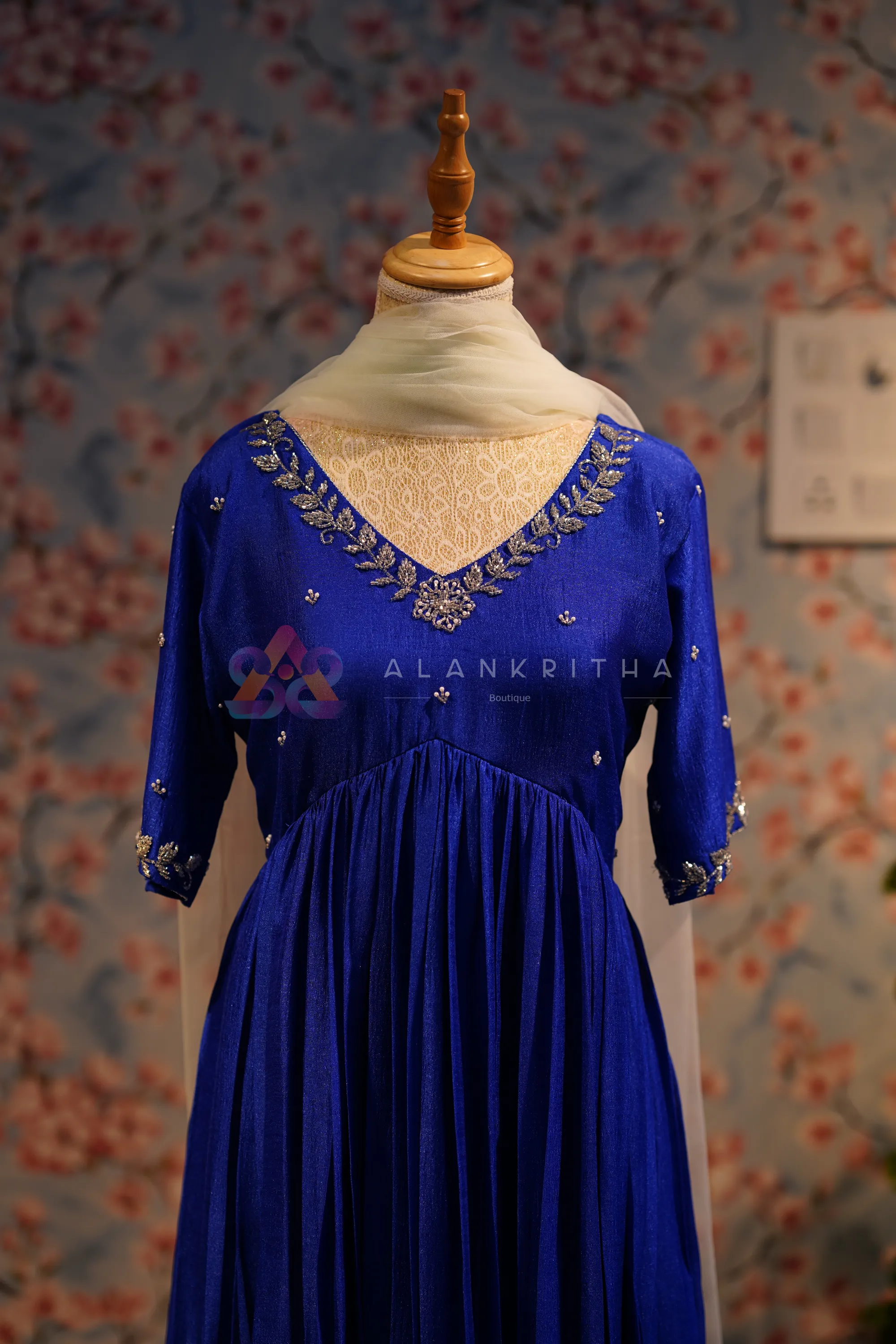 Regal Splendor: Royal Blue Vichitra Silk Alia-Cut Anarkali