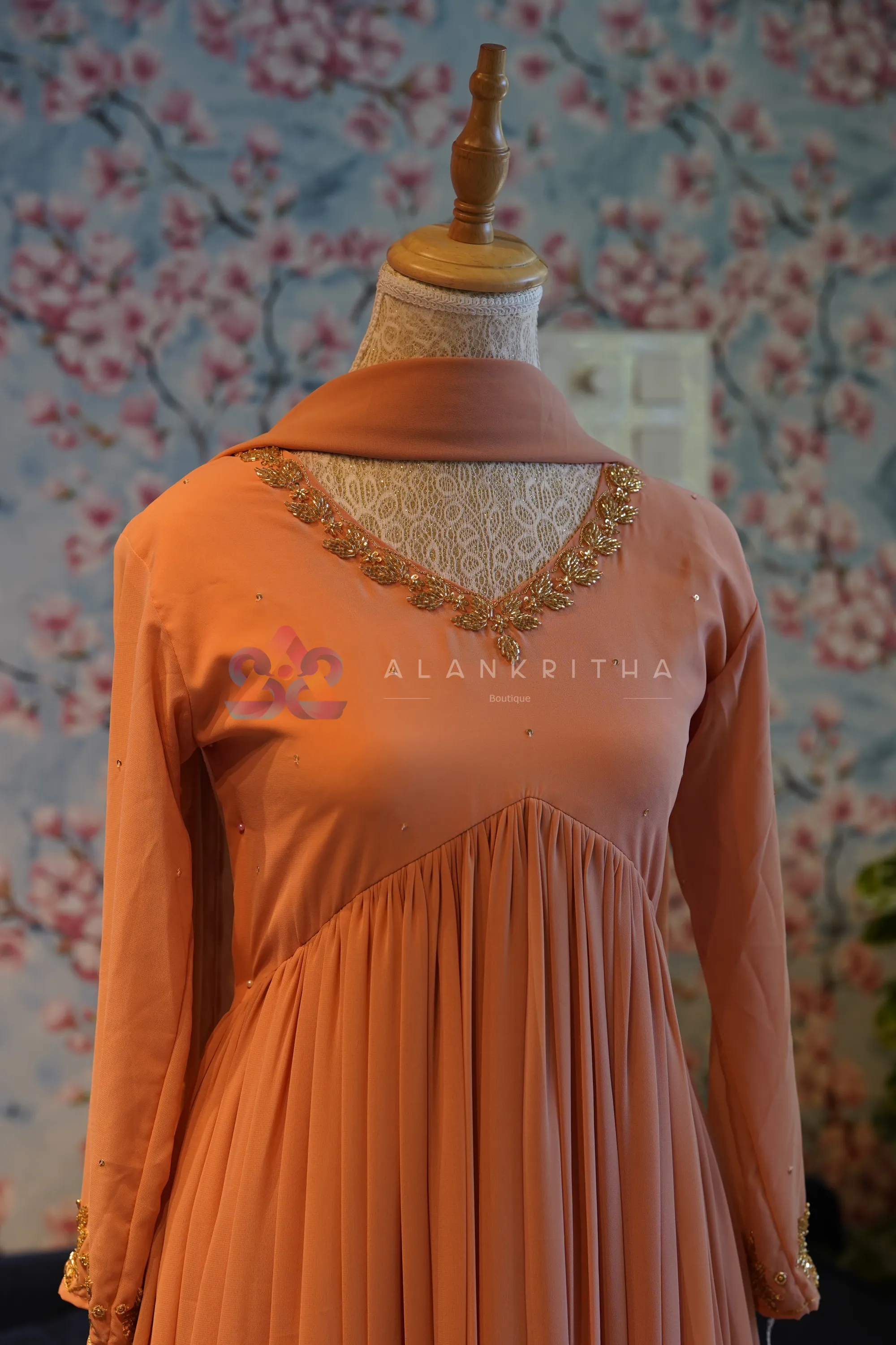 • Neckline: V-neck with intricate hand embroidery
