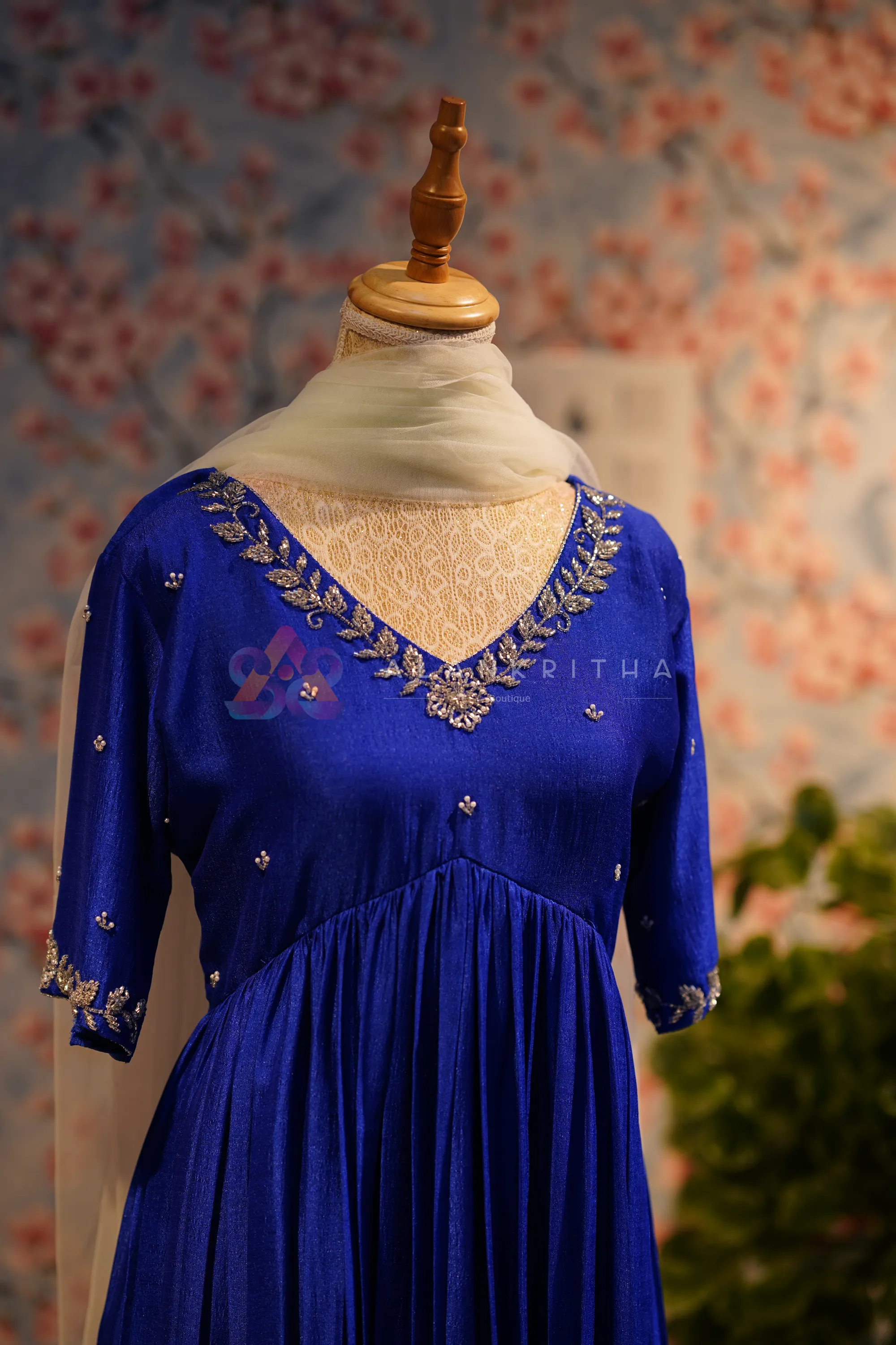 Regal Splendor: Royal Blue Vichitra Silk Alia-Cut Anarkali