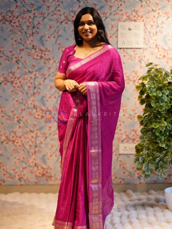 - Luxurious Blouse Fabric: The matching blouse is crafted from Viscose Georgette Silk, offering a subtle touch of glamour, superior comfort, and a perfect complement to the saree's flow.