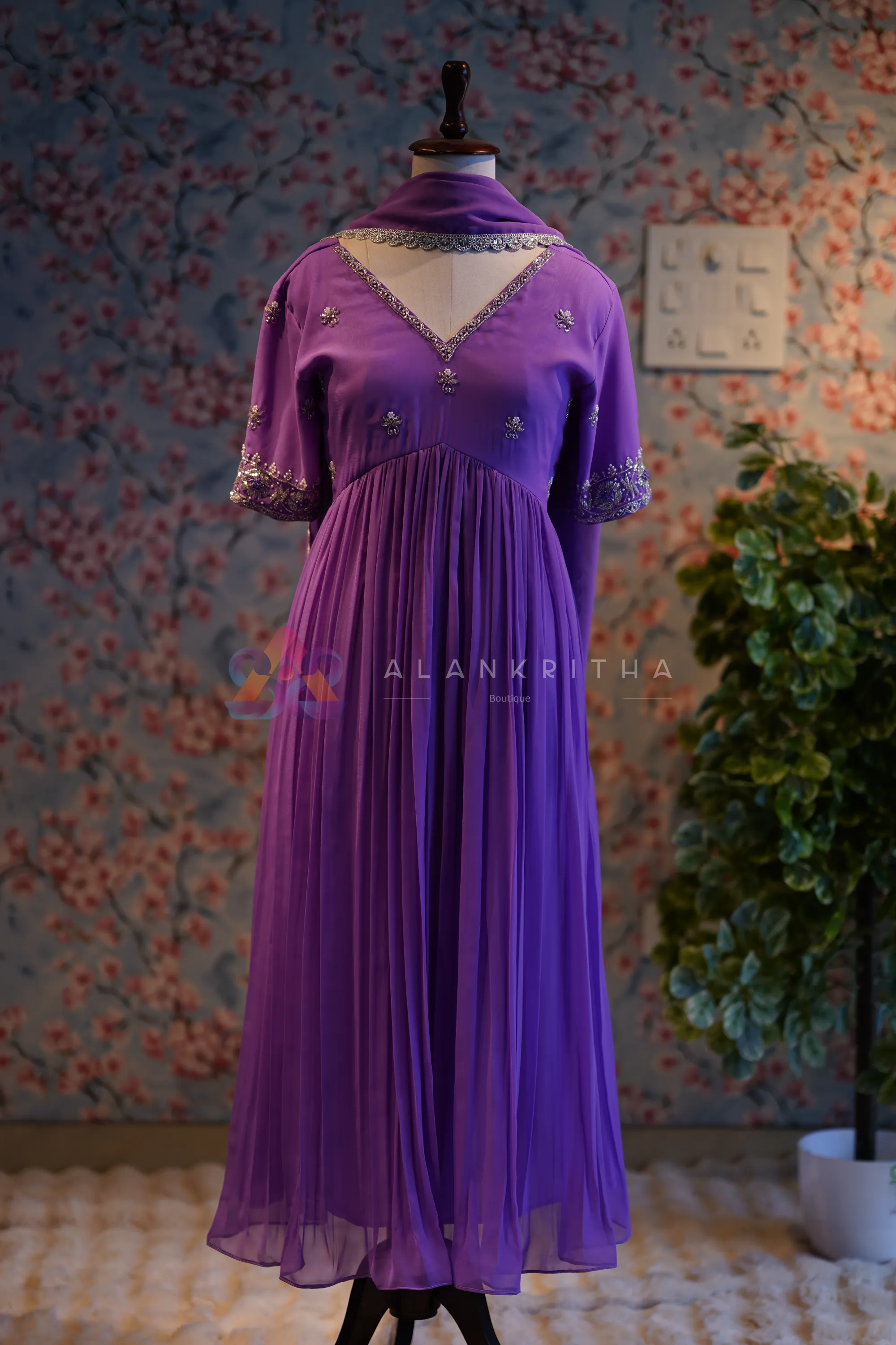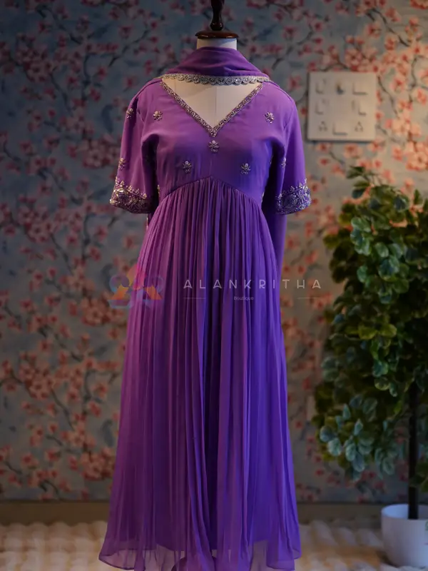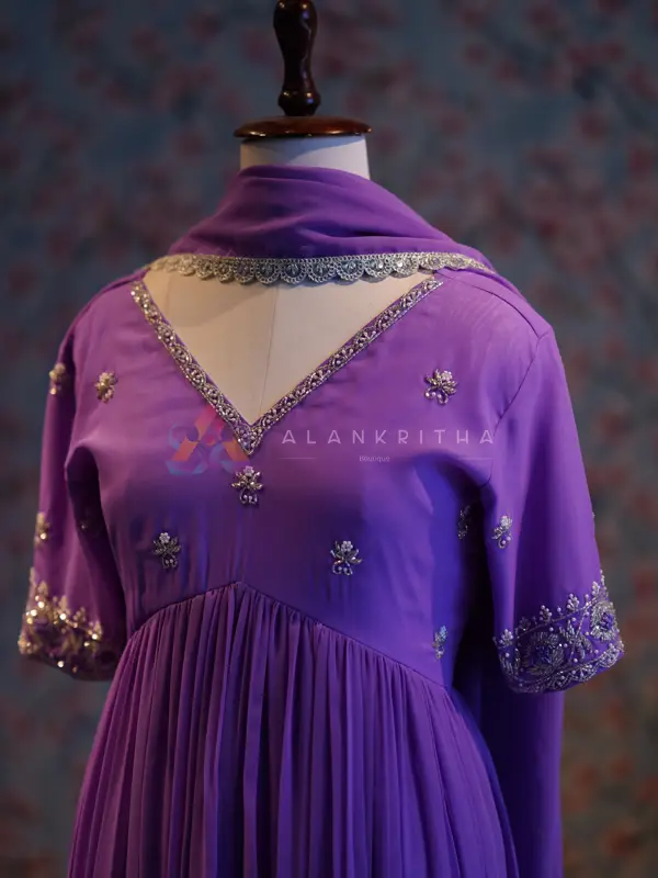 Lavender Etherea: Hand-Embroidered Alia-Cut Anarkali